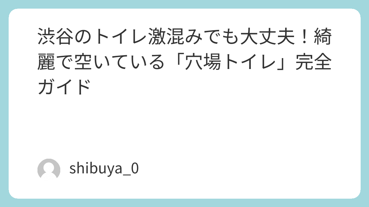 駅の公衆トイレの列に並ぶ前に、まずは近くにある大型ビルの上層階を思い出してみてください。今回ご紹介したような穴場スポットを把握しておくことで、どんなに混雑した日の渋谷でも、焦ることなくスマートに過ごせるはずです。